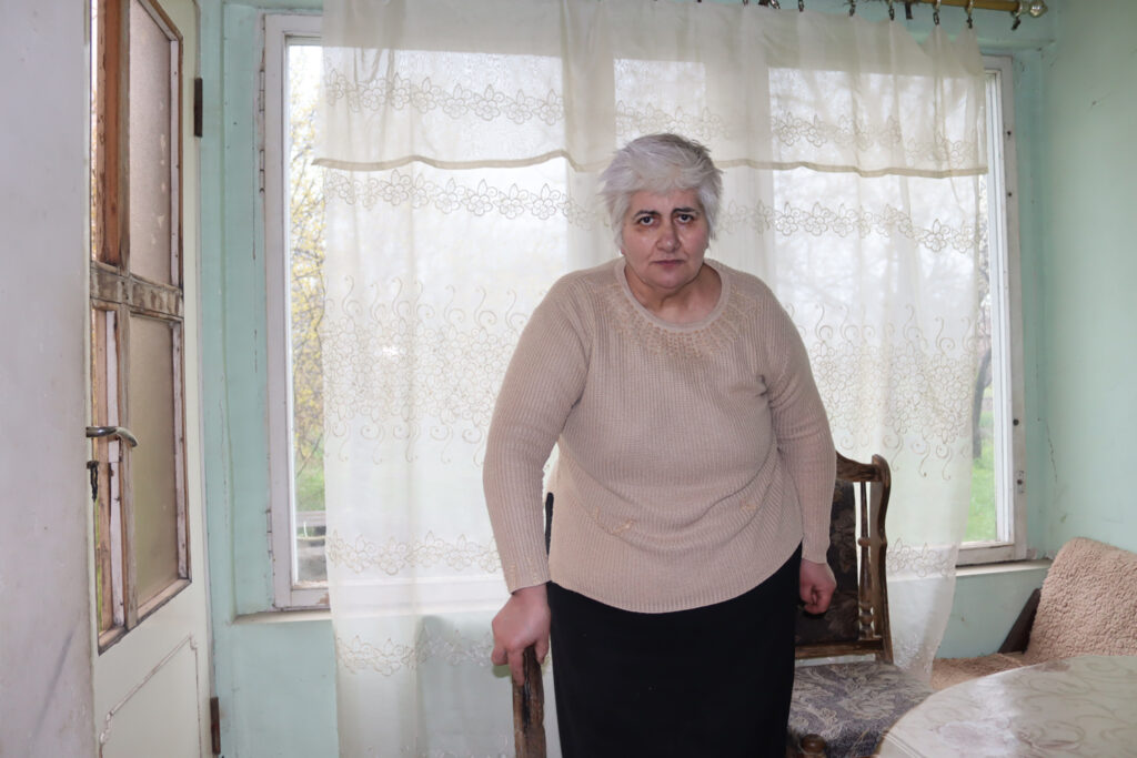 Mevrouw Hripsime heeft astma, zweren en spataderen. Ze heeft een tweedegraads invaliditeitsstatus gekregen. Ze slikt de benodigde medicijnen; haar astmamedicatie krijgt ze gratis, maar alle andere medicijnen moet ze zelf betalen. Helaas had ze ten tijde van ons bezoek de benodigde medicijnen niet allemaal in huis. Bovendien heeft ze moeite met bewegen, maar ze heeft niet eens een goede wandelstok.